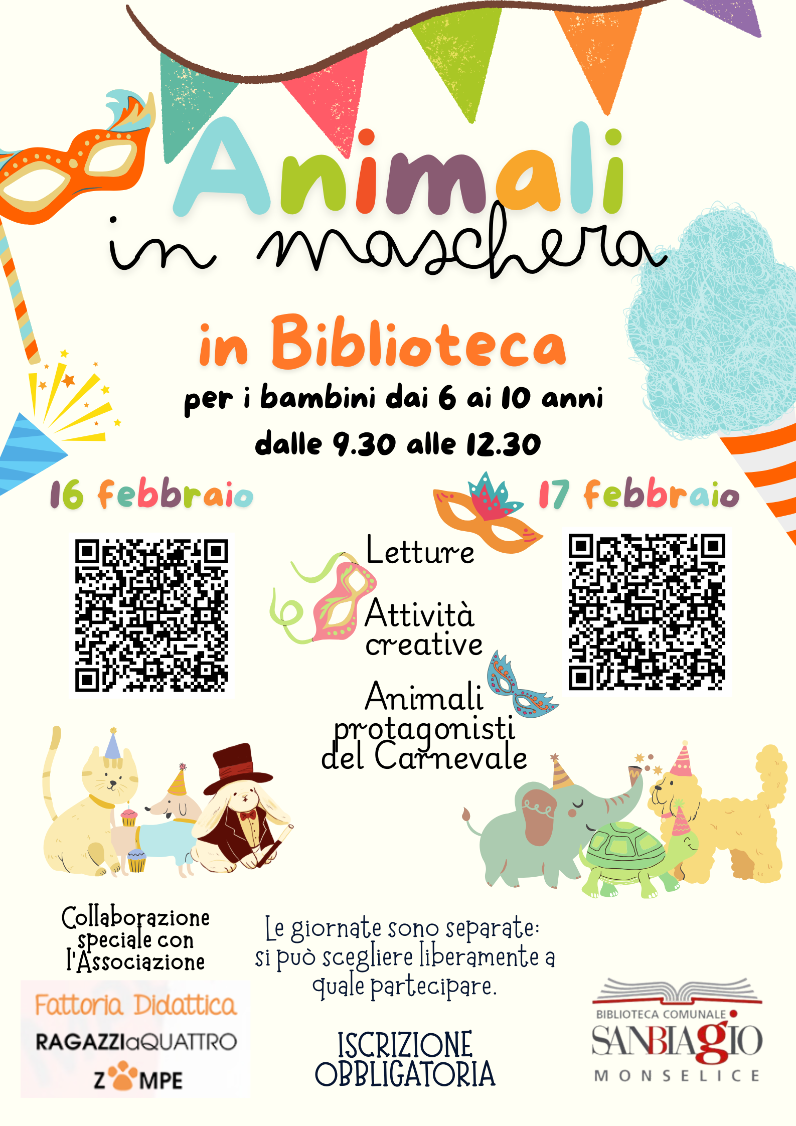 Lunedì 16 e martedì 17 febbraio, dalle ore 9.30 alle 12.30, la biblioteca propone “Animali […]